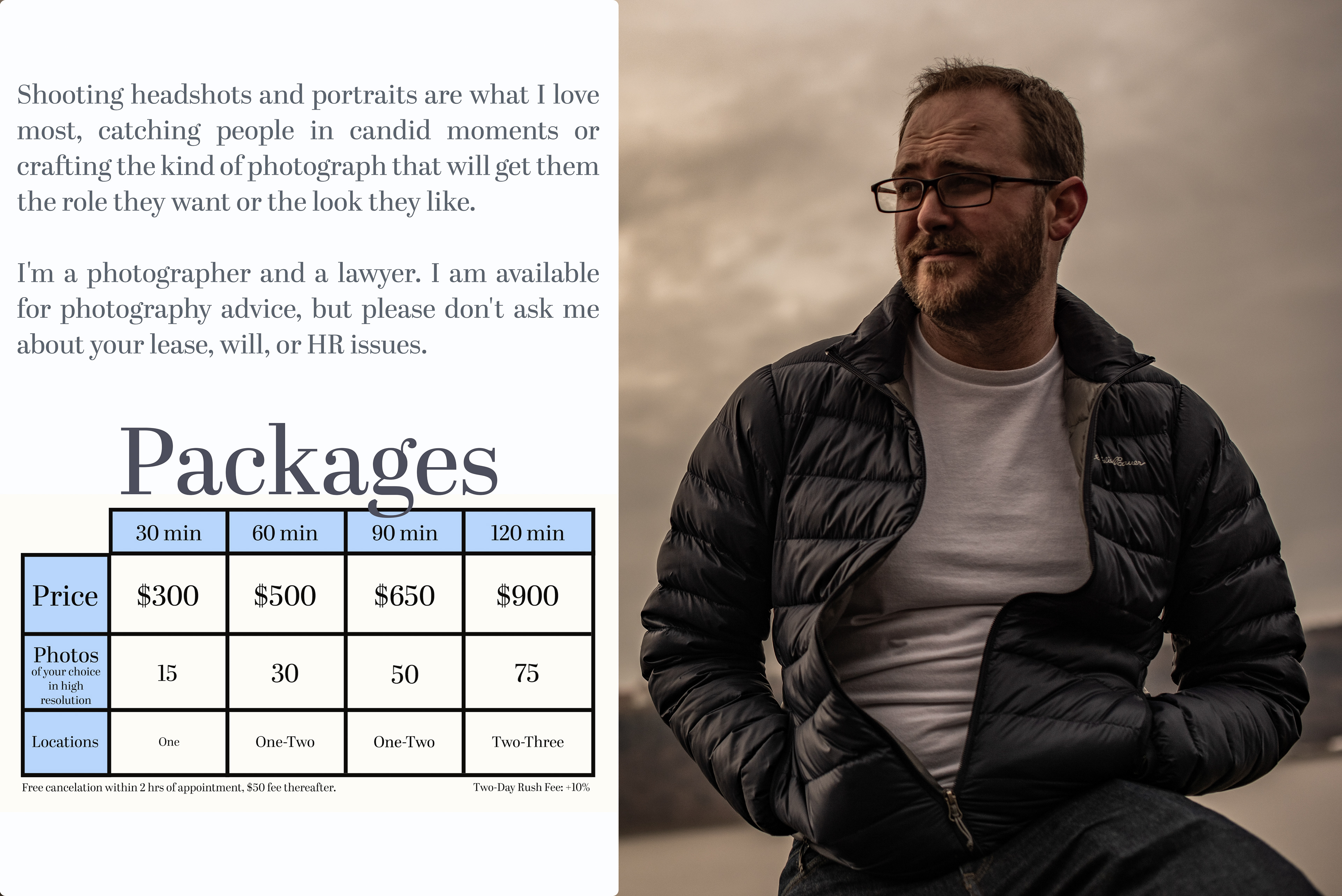 I am currently based in Fairfield County, Connecticut and therefore will have less availability for shorter New York City sessions.